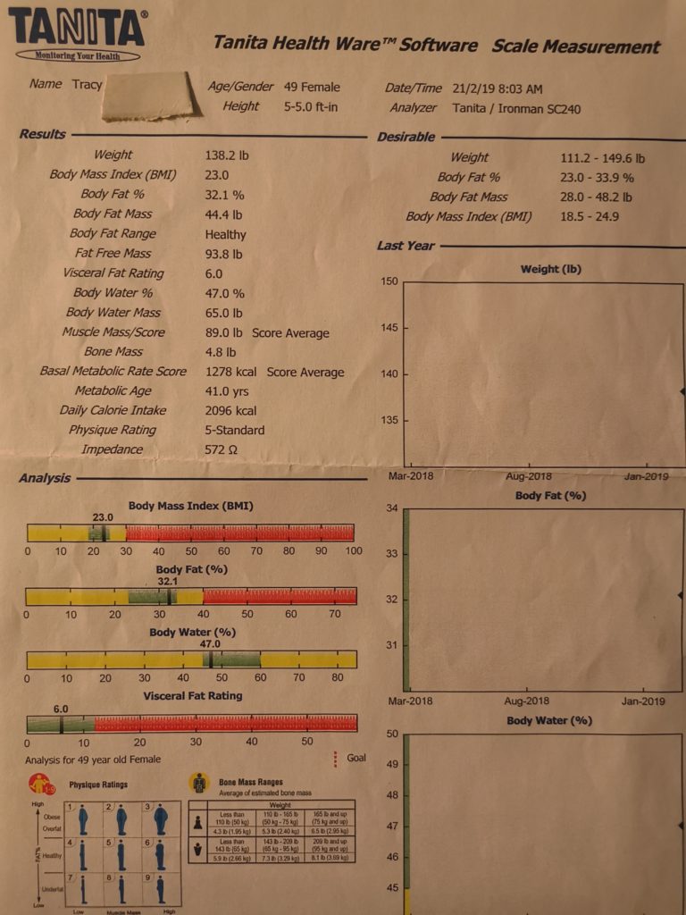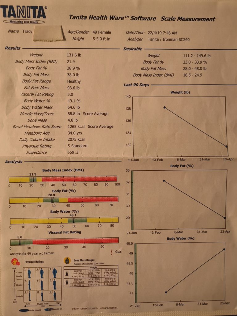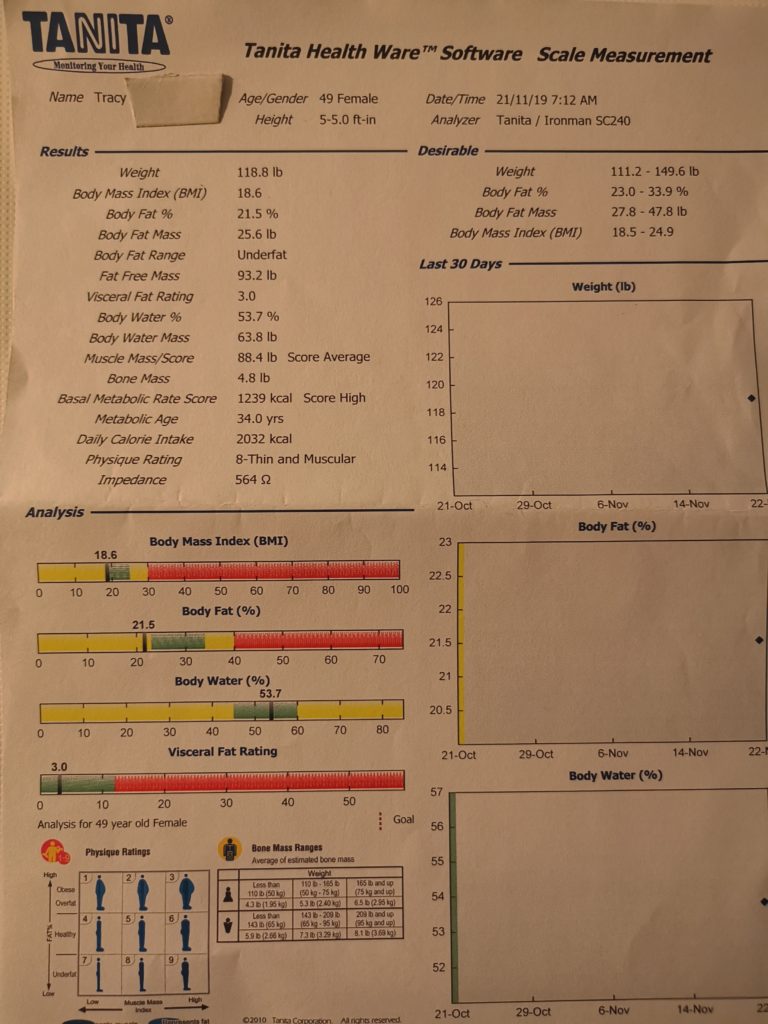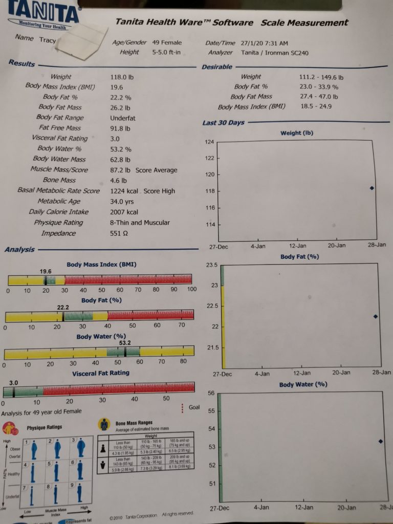 4 body compositions were taken through out 2019 (to see results for February, April, July and November go to the end of the post) to monitor my progress. My last body composition was taken yesterday, on January 27th, 2020, the day before my 50th birthday (results are also added at the end of the post). I still need to increase my caloric intake by eating more proteins and carbs to grow more muscle mass.